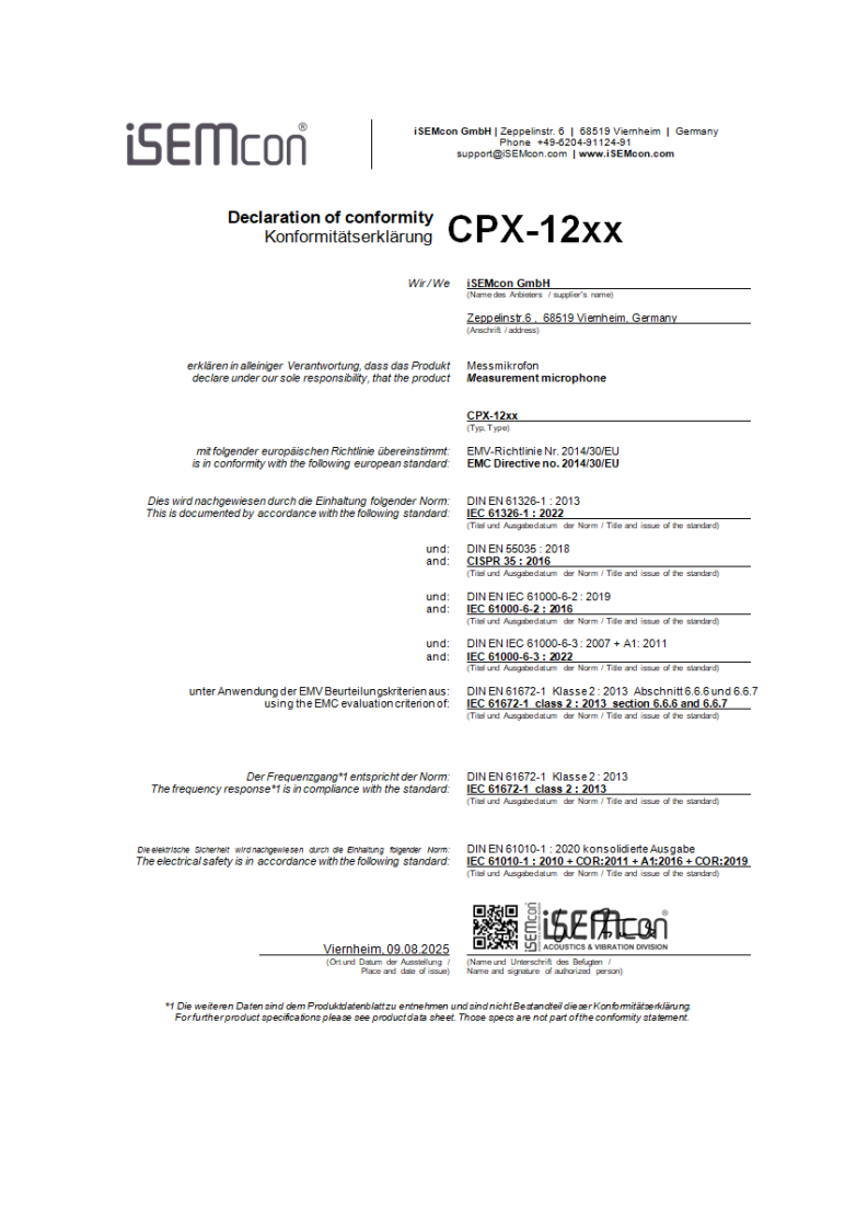 In our understanding neither the EN55035 Multimedia Standard nor the EN IEC 60268-4 sound system equipment – microphones is not the right choice.