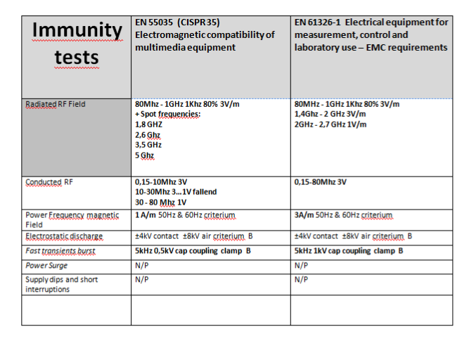 The EN IEC 61326-1 Electrical equipment for measurement, control and laboratory use – EMC requirements is the right one to be fullfilled.