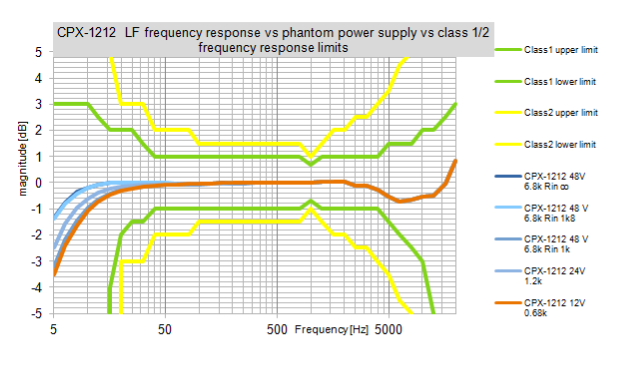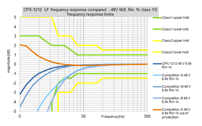 The following diagram shows how the inpute or better say load inpedance and Phantom Power Supply affect the low frequency roll-off of the CPX followed by another diagram show how the CPX-1212 competes